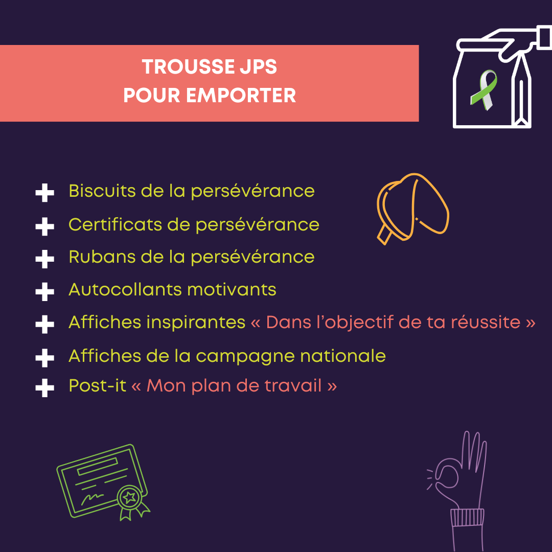 Grâce au matériel varié et aux outils promotionnels qu’elles contiennent, ces trousses vous seront très utiles pour animer des activités et faire vivre les Journées de la persévérance scolaire dans votre milieu.